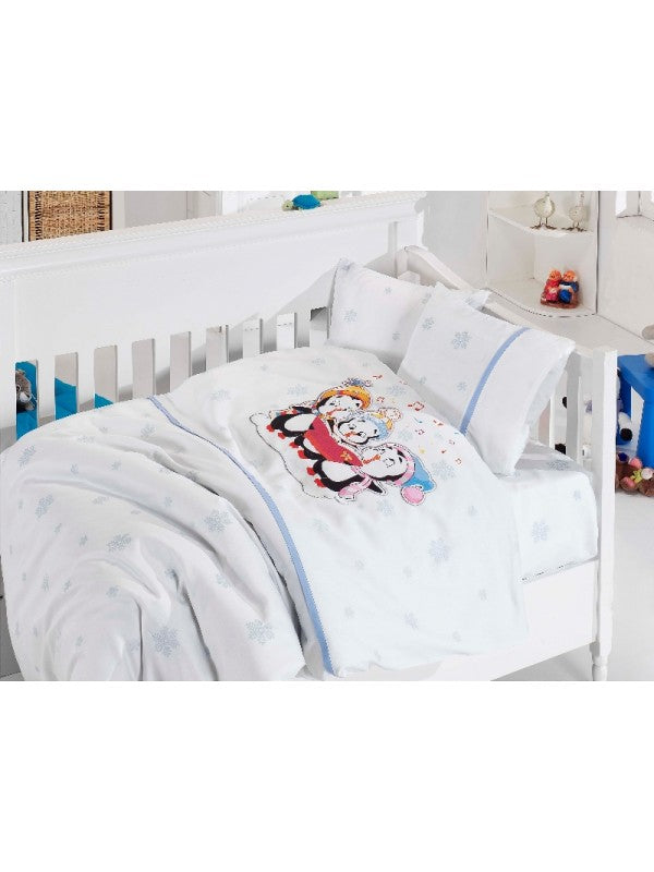 Високоякісна постільна білизна для ліжечок PENGUINS, виготовлена в Туреччині з бамбука. Цей комплект бамбукової постільної білизни для новонароджених є екологічно чистим продуктом. Бамбук гіпоалергенний, підтримує природну терморегуляцію організму та не утримує запахи. Побалуйте свою дитину високоякісною турецькою постільною білизною.