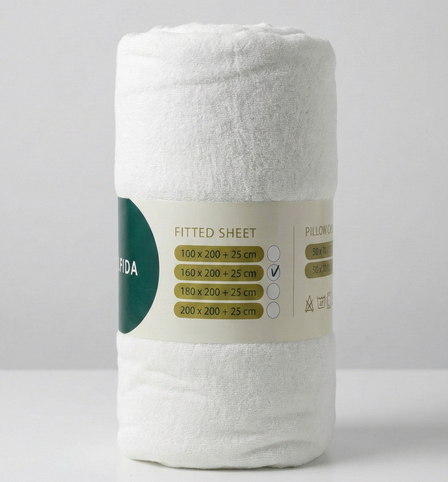 Простирадло на резинці з гумкою, махрова тканина, Alber «Крем»
