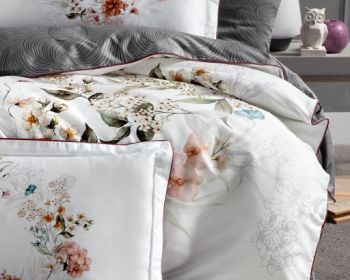 Постільна білизна преміум-класу з атласу 300TC з квітковим сірим принтом :: La Romano
