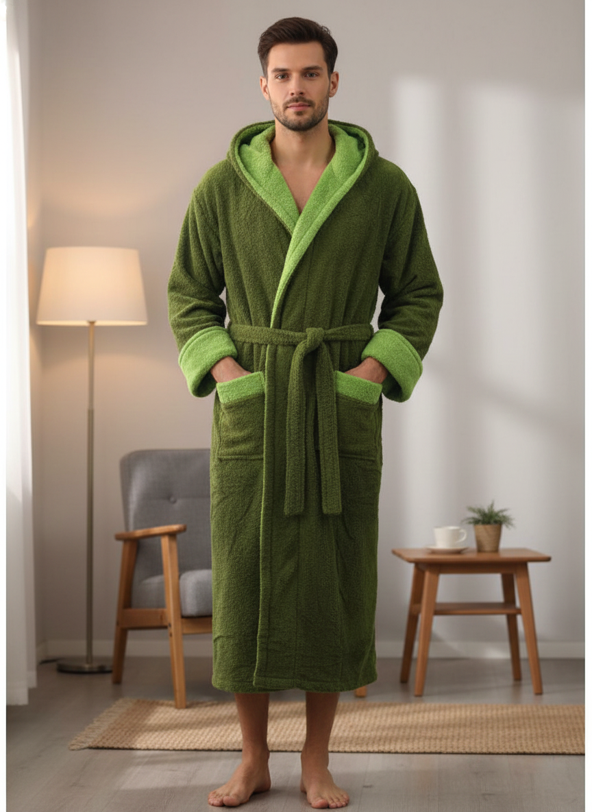 Елегантний пухнастий чоловічий халат Amore Soft з капюшоном.