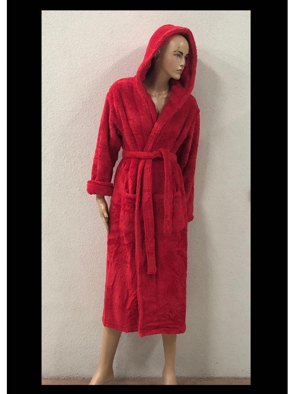 Елегантний довгий жіночий халат з капюшоном. Халат практичний і дуже красивий, зберігає свій зовнішній вигляд після багаторазового прання.